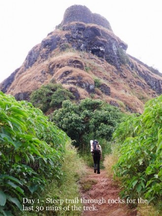 Via Bhor Route: After reaching Bhor, trekkers should move towards Bhutonde village and start their trek. This route is shorter than the other routes (Pali & Gunjawane)mentioned, but is not very popular with trekkers as it is very slippery during monsoon season. But during winters trekkers can try this route as it offers a different experience.