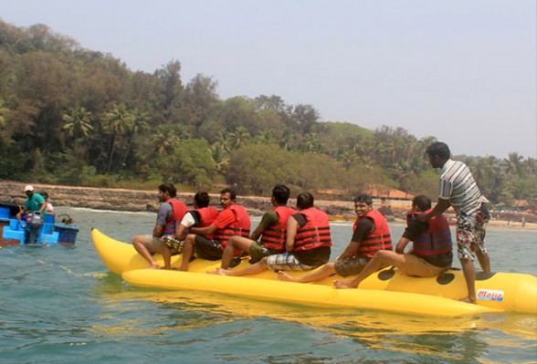 Banana Ride A Banana boat ride is a very joyful activity and is enjoyed by children and adults especially if they are part of a big group. An inflatable boat similar to the shape of a Banana is used and it is connected to a speed boat which drives through the sea. During the ride the driver of the speed boat attempts to flip the banana boat upside down by taking sharp turns, each Banana boat can accommodate around 4 to 6 people and all participants are given a life jacket for safety reasons. The funniest part about this ride is the speed boat throws off the passengers from the Banana boat as soon as the speed boat sprints across the sea. After being thrown into the water, the passengers pull themselves back into the banana boat and start afresh. This is a repetitive process of getting flung into the sea and then hauling yourself back to the banana boat. Nevertheless, a fun filled activity which cannot be ignored at any cost.