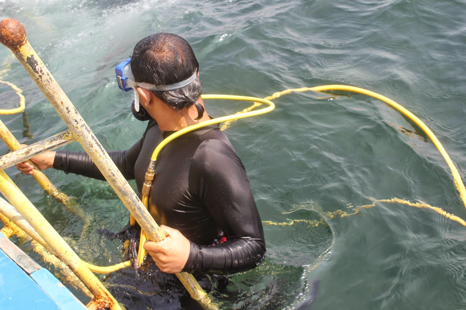 This type of dive is termed commercial as it involves diving into the water with an oxygen pipe attached at one end to the diver and the other end of the pipe is attached to an oxygen tank placed in a boat near the diving site.